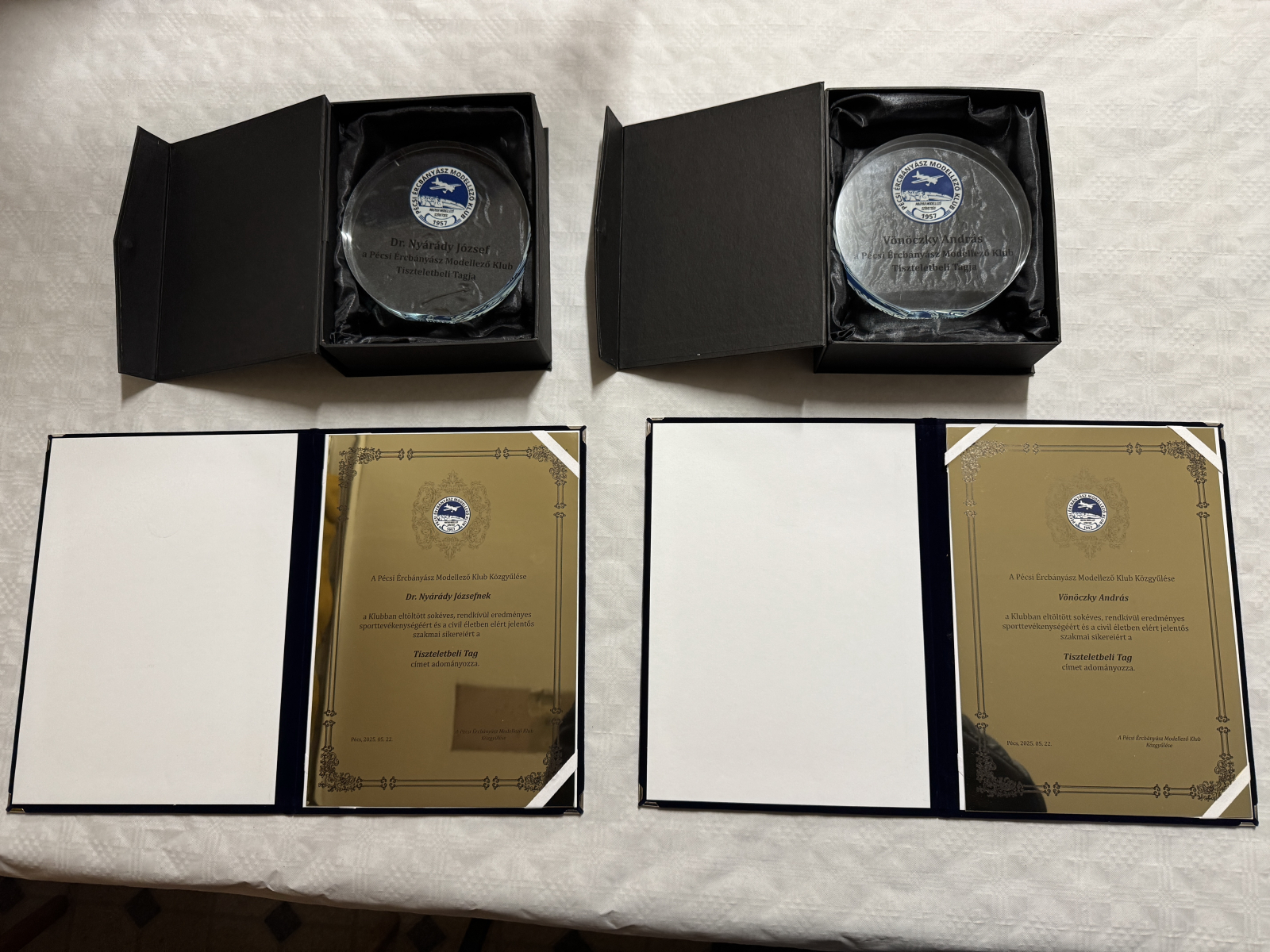 A Pécsi Ércbányász Modellező Klub 2025. május 22-én megtartott közgyűlése – az Alapszabály 5.5. pontjában foglaltaknak megfelelően egyhangú döntéssel két korábbi kiváló klubtagot részesített tiszteletbeli tagságban, elismerve kimagasló szakmai és sporteredményeiket, valamint több évtizedes munkájukat a magyar modellezés és a klub hírnevének öregbítéséért.